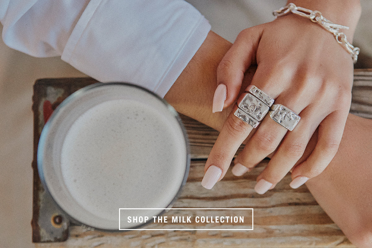 Introducing the Milk Collection. Four new pieces dripping in creamy metal waves - all hand formed from wax and cast into 100% recycled sterling silver. An exploration of organic textures with an indulgent, weighty feel.